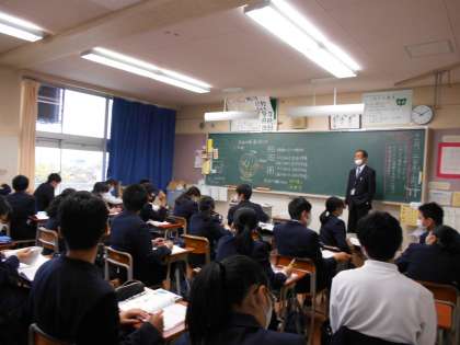 1年の英語の授業では、"Who〜?"を使って「誰ですか?」と尋ねる言い方を学習しました。2年の体育の授業は、男子はバレーボールをしました。3年の理科の授業では、天体の学習をしました。
