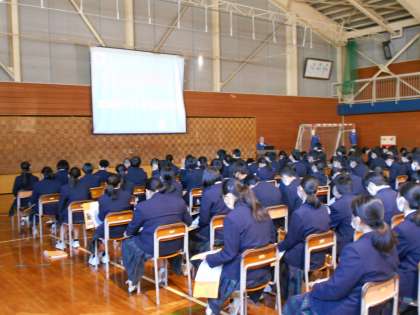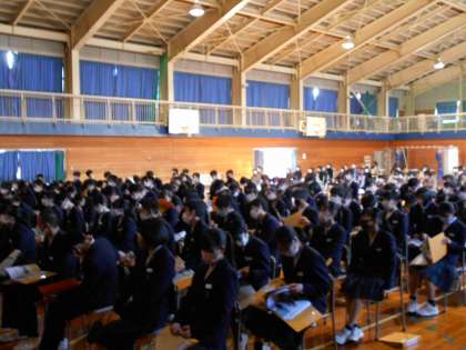 午後から進路説明会を行いました。私立高校の先生方が来校され、各学校の特色を説明していただきました。
