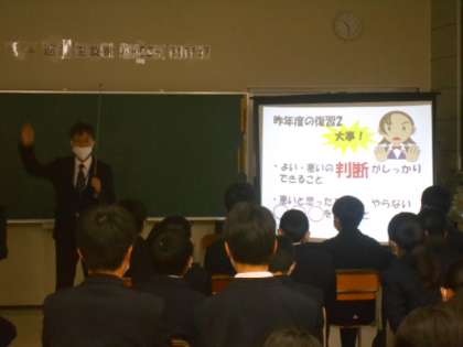 11月10日(火):第1学年 情報モラル講座 公開日 2020/11/10 更新日 2020/11/10 1学年 昨日1年生の2クラスが情報モラル講座を受けました。映像やグラフ等を見ながら、危険なことを具体的に教えていただきました。明日は、残りの2クラスが受講します。