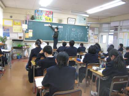 1組は「吾一と京造」、2組は「銀色のシャープペンシル」、3組は「旗」、4組は「ある日のバッターボックス」を資料としました。どのクラスの生徒ものびのびと自由に発言していました。自分とは違う考えをもつ人もいるのだと改めて感じ、どんな意見や考えも受け容れることの大切さを学びました。