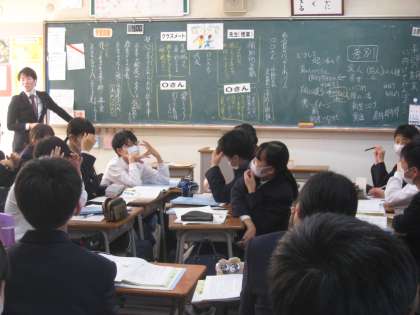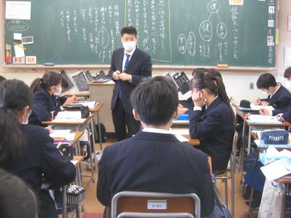 学級によって実態が違うと、生徒から出る意見も違います。担当教諭はそれぞれの学級の実態に合わせて生徒の意見をつなぎます。ある学級では、先週時間配分がうまくいかなかったので今週はその点に重点を置いて、終末の時間確保をしていました。