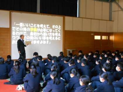 学年集会がありました。 学年主任からの今後の進路についての話です。