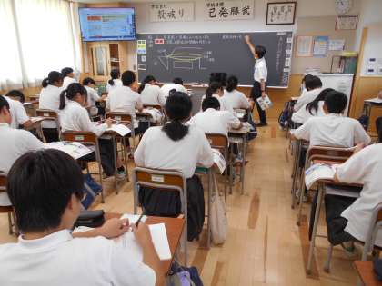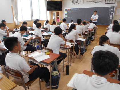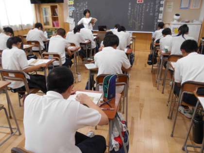 3組国語では、教科書の小説文を生徒のリレー方式で朗読中。皆、静かに聞き入っています。
