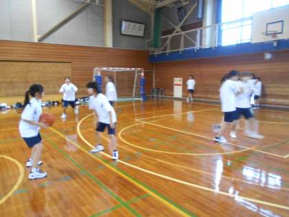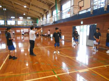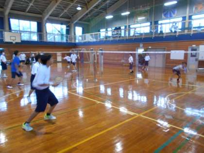 写真左から男子バスケットボール部、女子バスケットボール部、男子バドミントン部の様子