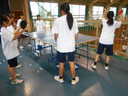 写真左から女子バドミントン部、卓球部男子、卓球部女子の様子