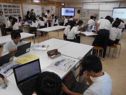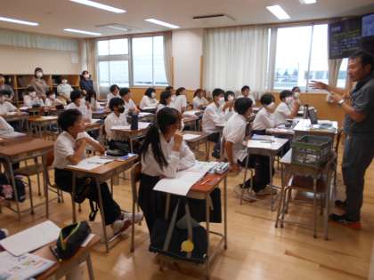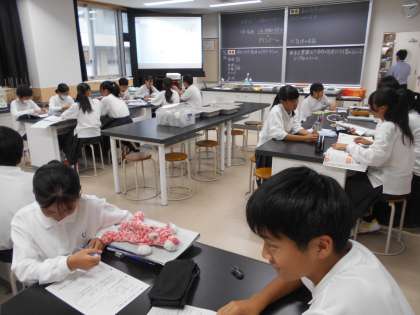 2組家庭では、繊維の特徴を見付けてまとめ、グループ内で伝え合いました。