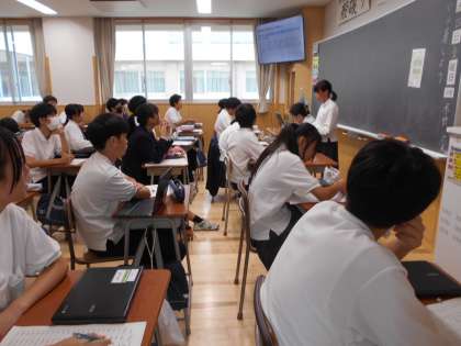 2年生は「社会に学ぶ『14歳の挑戦』クラス発表会を全クラスで行いました。各自、活動の内容をスライドにまとめ、クラスメイトに伝えました。