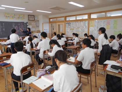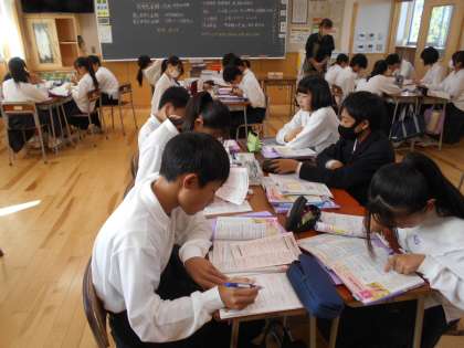 1組保健体育では、グループで相談しながらワーク記入を進めていました。