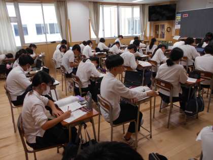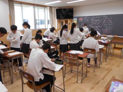 来週の中間考査に向けて、1組数学や3組理科では、ワークや学習プリントに取り組んで、先生に提出しています。