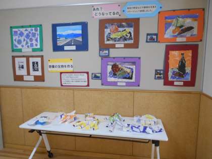 1年に1回、本校生徒の美術作品と富山総合支援学校生徒の美術作品を交換して、互いに校舎内で展示しています。現在、生徒玄関からまっすぐ進んだ1F渡り廊下に展示してあります。ぜひ、他校の生徒作品から学びを見つけてください。