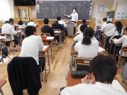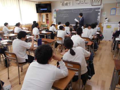 写真左から1組地理、2組数学、3組英語の様子