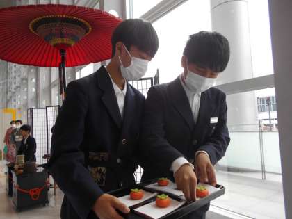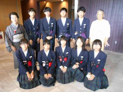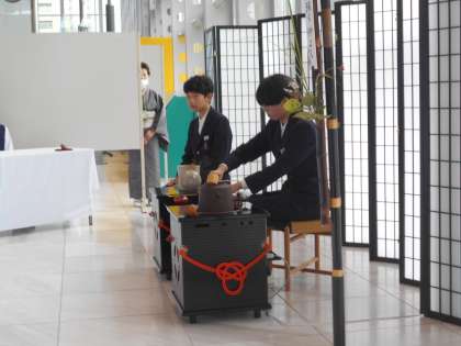 第20回富山市中学校文化祭がオーバードホールで行われ、本校からは茶道部9名がお茶席の点前、半東、運びに参加しました。部員たちは、日頃の部活動で身に付けた所作や挨拶の口上を凜々しくこなし、練習の成果を発揮していました。