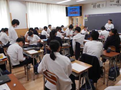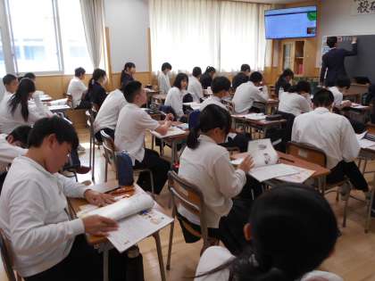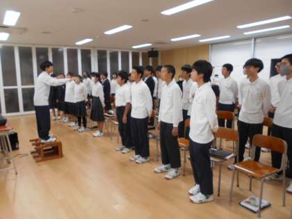1組学活では、気持ちを込めて合唱できるように、クラスの合唱曲「心の瞳」の歌詞の意味について考えました。