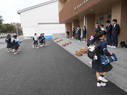 後期生徒会執行部が行うあいさつ運動「ハローリンクアクション」が始まりました。笑顔あふれる西中を目指し、毎朝行います。全校であいさつしましょう。(写真は5日の様子す)