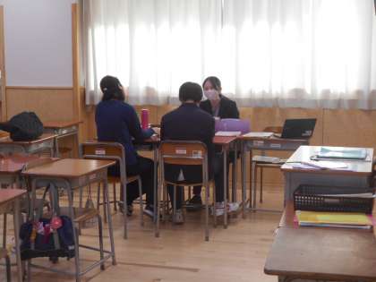 今日から3年進路懇談会が3日間行われます。中学卒業後の進路について、本人、保護者、担任の3者で真剣に考えます。