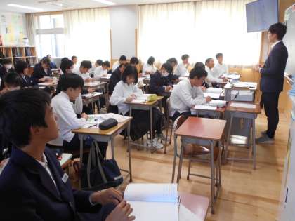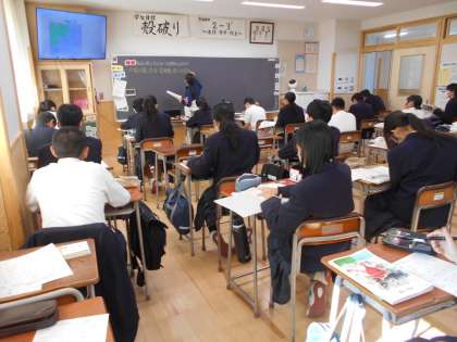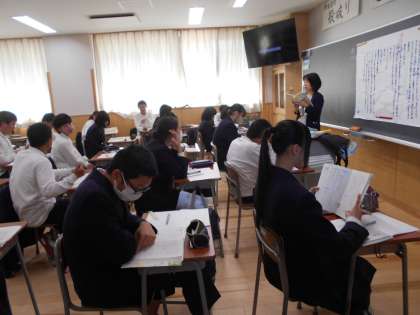 いずれのクラスも静かに落ち着いて授業が進められていました。もう少し生徒の反応があり、活気があってもよいかも。
