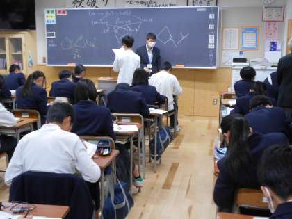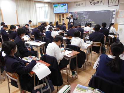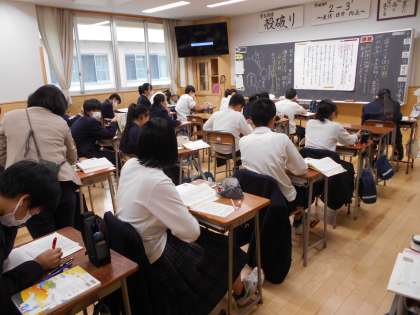 「三角形の内角の和」、「甲府盆地」、「徒然草」。どのクラスの学習内容も期末考査の範囲に含まれているんだろうな。しっかり授業を聞き、ノートをとろう。