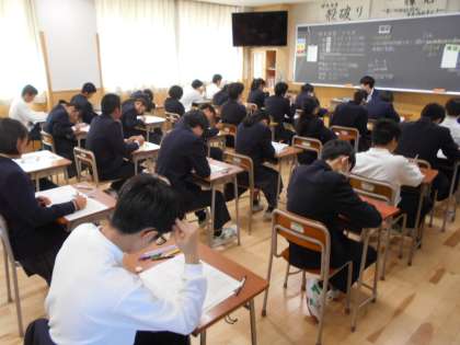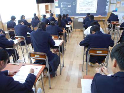 今日から第2学期の期末考査が始まりました。今日は3教科に取り組みました。もちろん、どの学年もどのクラスも真剣です。