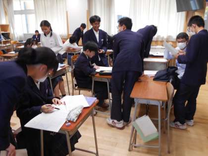 2組では国語「おくのほそ道」の暗唱テストを行いました。さすが3年生、結構スラスラと言うことができていました。