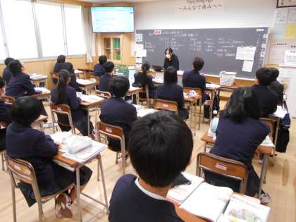 写真左から2組国語、3組英語の様子