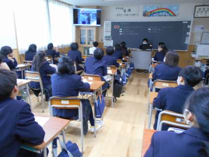 3組総合では職業調べのため、働く人のDVDを視聴していました。中学校での進路学習がスタートしています。