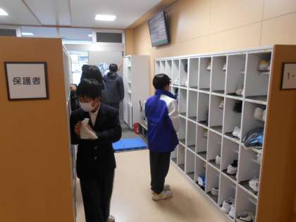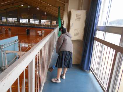 放課後に生徒会執行部が「トライやるクリーンアクション」を行いました。ボランティアで参加した生徒が、日頃できない活動場所の清掃を行いました。1年生は生徒玄関下足ロッカー、2年生は誠武館、3年生は体育館ギャラリーの清掃をしました。