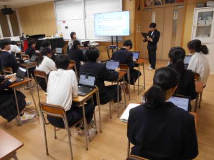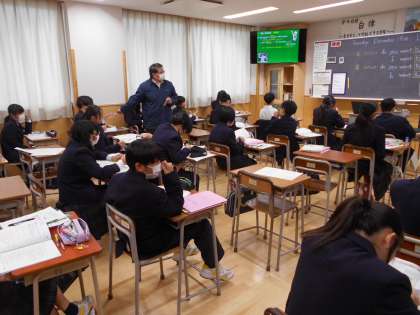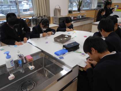 1組家庭は裁縫を行い、刺し子のいろいろな縫い方に班ごとに挑戦していました。