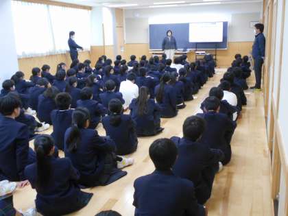 写真左から1年学年集会、2年学活、3年学年集会の様子