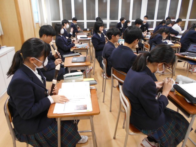 3組音楽では、リコーダー練習に熱心に取り組んでいました。近々、リコーダーの演奏テストがあるのでしょう。