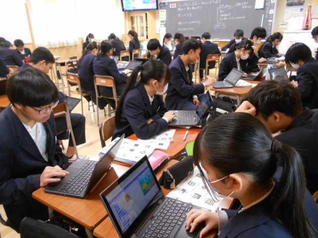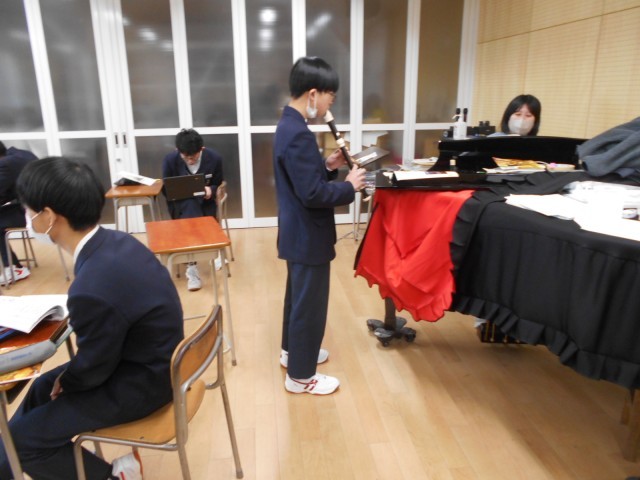 2組音楽はリコーダーの実技テストを行っていました。一人一人演奏するので、ちょっと緊張しますね。