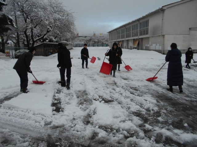 今朝は昨朝よりも積雪があり、2年1組が除雪当番を頑張ってくれました。ありがとう。