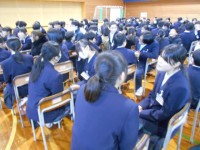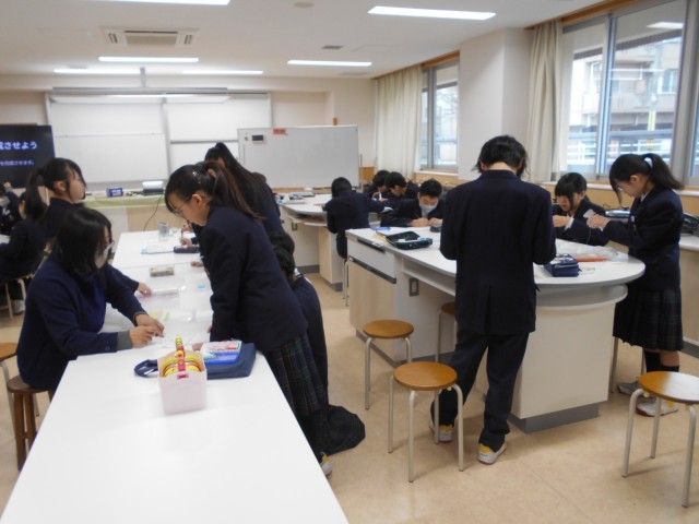 3組家庭科は針と糸で刺し子の作業を行いました。希望者はスパンコールも縫い付けました。