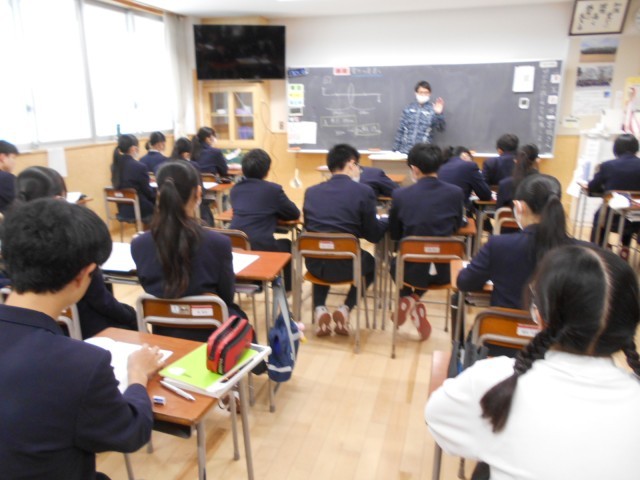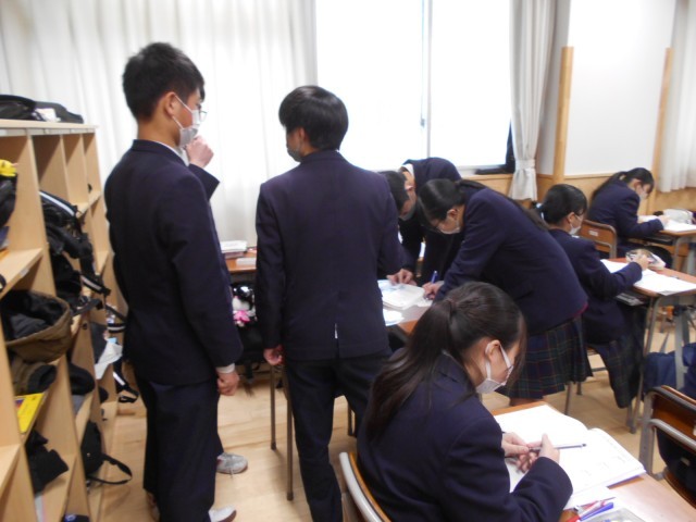 2組数学では、学習プリントに取り組み、難問や分からない箇所は友達と一緒に考えて解決していました。