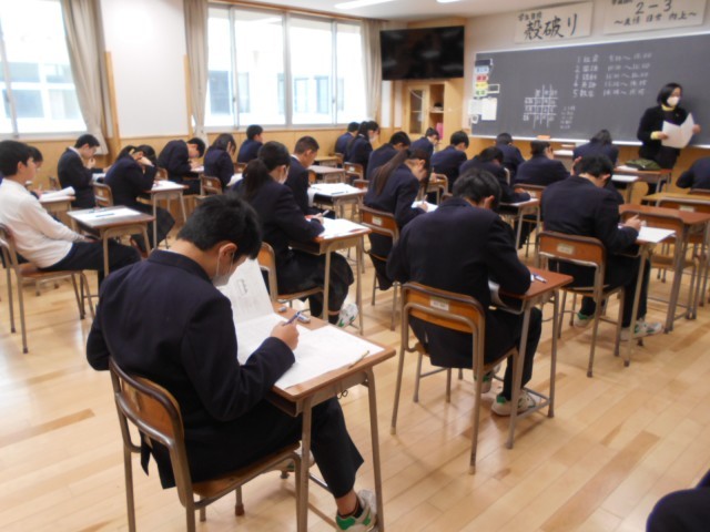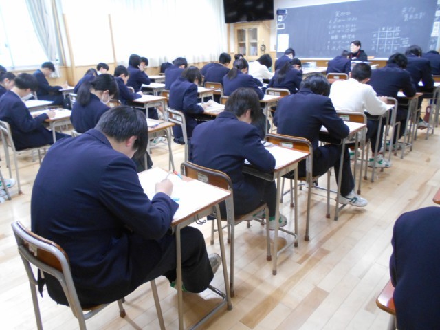 3年生の私立高校一般入試当日、2年生は実力テストに臨んでいます。問題を解きながら、来年の今頃、自分が受験生であることを実感している人もいるのでは?