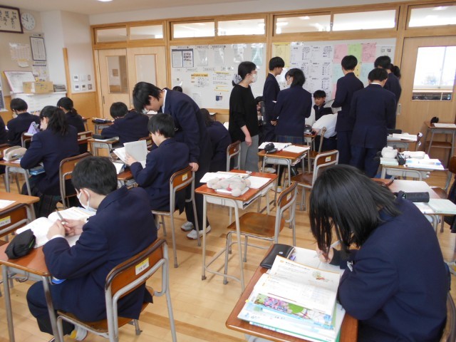 授業の学習内容が明後日からの学年末考査に出題される可能性が高く、説明にしっかりと耳を傾けていました。