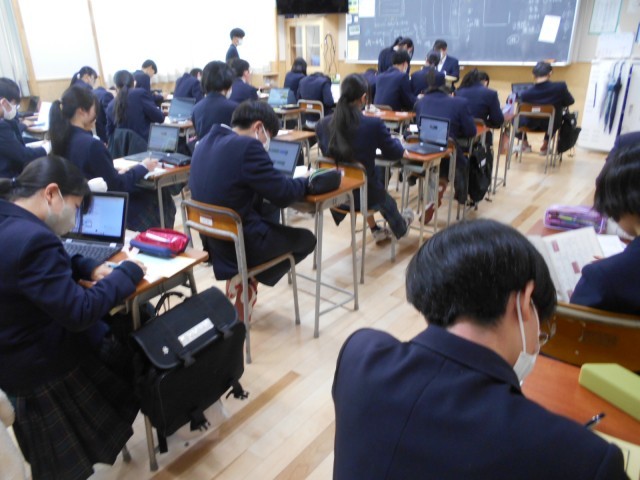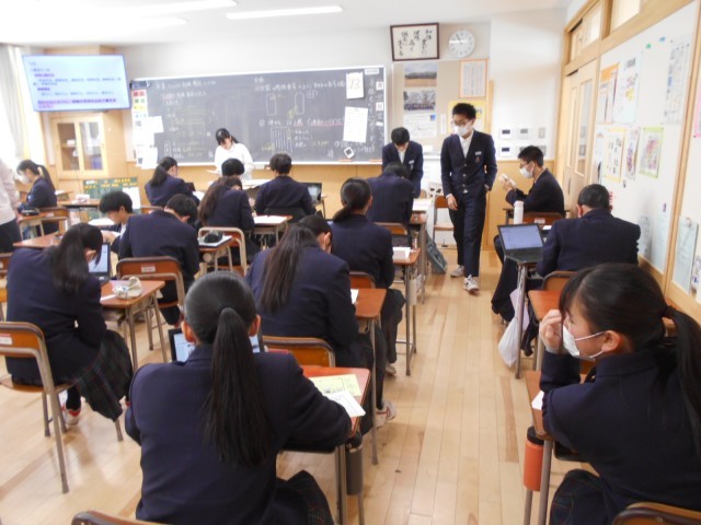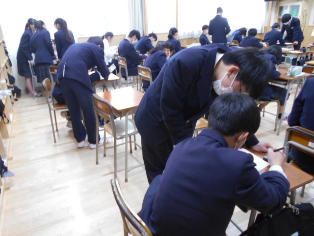 一足先に学年末考査を終えた3年生は、学活の時間に卒業に向けた準備を始めました。今日は誰かへのメッセージを書いていたみたいです。