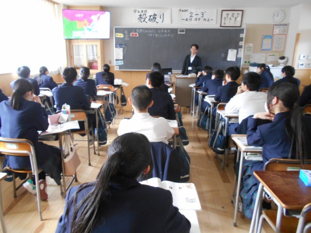 今日は県立高校入試1日目。多くの3年生が入試に臨んでいます。今日の2年生は1年後の今日を考えながら授業に臨んだ生徒も多かったのではないでしょうか。