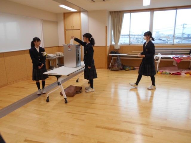3月6日(木)生徒会役員選挙投票の様子(1年)