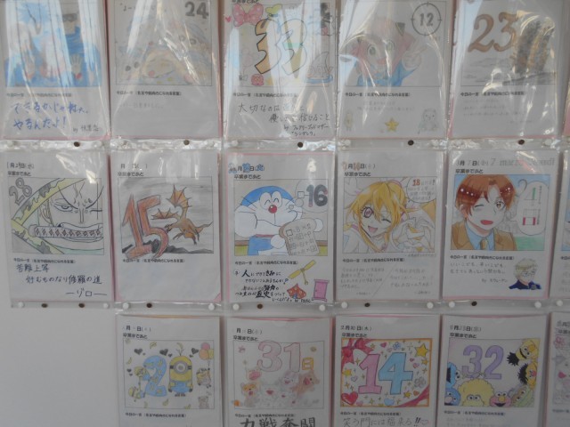 3年教室の卒業までのカウントダウンカレンダーもあと4日となりました。(写真右)