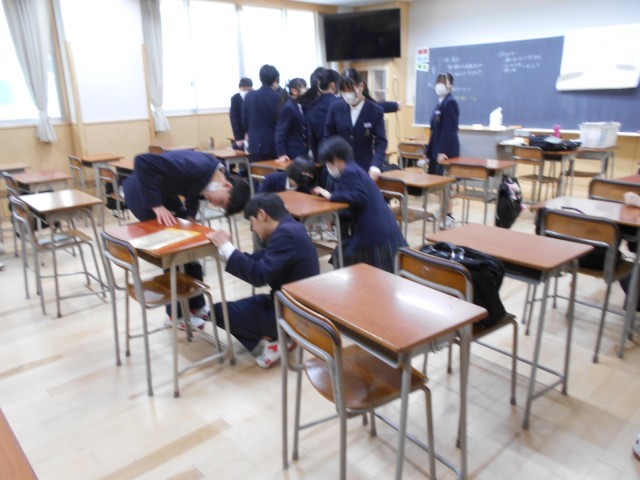3年生は自分たちの教室や下足ロッカー等を清掃しました。普段、清掃しない所を中心に、しっかりと雑巾で拭き取るなどしました。「立つ鳥跡を濁さず」ですね。