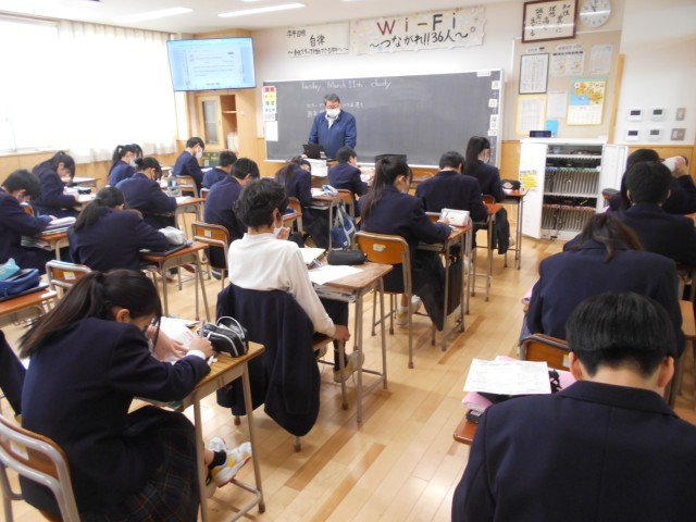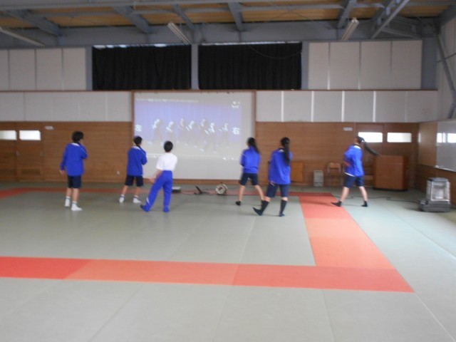 3組保健体育は練習してきたダンスの発表会でした。他の班の人に見られていると緊張するとのことで、後ろ姿の発表会になりました。