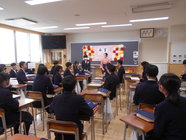 卒業証書授与式後は、教室で最後の学級活動を行いました。担任から一人一人に卒業証書が手渡されました。