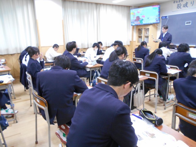 写真左から1組保健体育、2組歴史、3組国語の様子