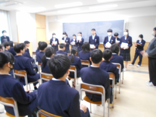 3学期の登校日数もあと3日。1学年では学年集会を行い、3学期学級MVPの表彰、学年担当者の先生方のお話などがありました。4月からは2年生になります。進級を意識した春休みを過ごしてください。