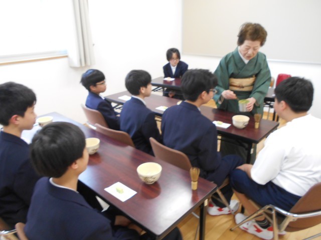 部活動見学期間で、1年生が活動を見学したり、体験したりしていました。茶道部では、外部指導者の方がお点前を体験させてくれました。