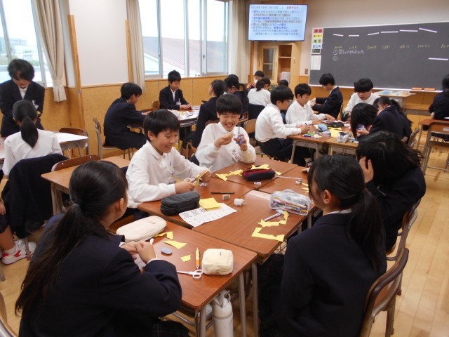 6限学活では、学級目標づくりが行われました。どんなクラスにしたいか意見を出し合い、目標にしました。次は目標をどのように掲示するか、アイディアを出し合っていました。