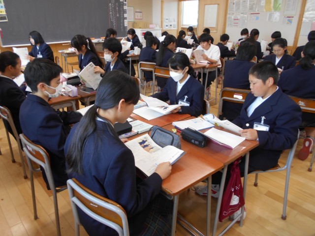 写真クリックして上から1組国語、2組数学、3組音楽の様子