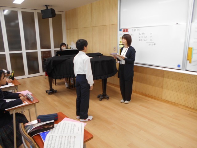 3組音楽では、校歌の歌唱テストが行われていました。入学して1か月。歌詞を覚え、しっかりと歌えるようになってきました。