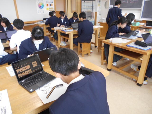 写真クリックして上から1組美術、2組国語、3組数学の様子