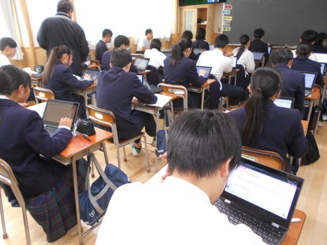 写真クリックして上から1組英語、2組理科、3組社会の様子